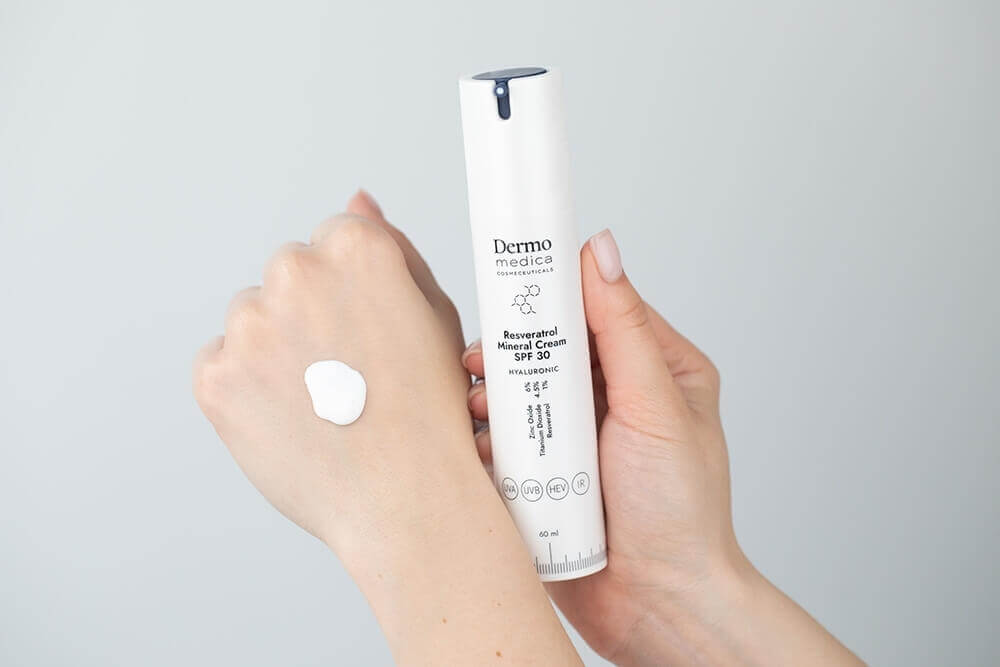 Najlepszym tego przykładem jest Dermomedica Resveratrol Mineral Cream SPF 30. Resweratrol to niezwykle silny i skuteczny antyutleniacz. Ponadto uważa się, że ma zdolność inhibicji tyrozynazy, dlatego jego właściwości chętnie są wykorzystywane w preparatach aktywnie rozjaśniających przebarwienia. Tym sposobem nie tylko zapobiegamy powstawaniu przebarwień, ale rozjaśniamy już te istniejące.