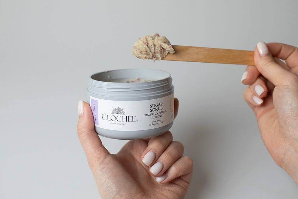 Sugar Scrub marki Clochee to peeling o zapachu mango, który złuszcza martwy naskórek za pomocą pestek malin i drobinek cukru. Dodatek masła shea łagodzi podrażnienia, nawilża i regeneruje skórę.