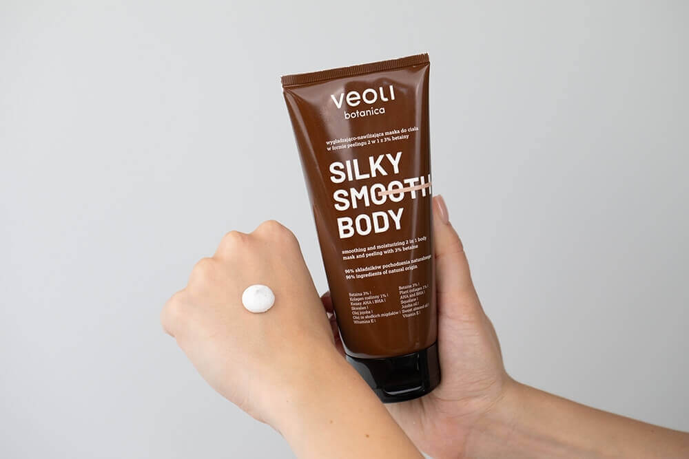 Veoli Botanica Silky Smooth Body wygładzająco - nawilżająca maska do ciała w formie peelingu 2w1 z 3 % betainy 180 ml