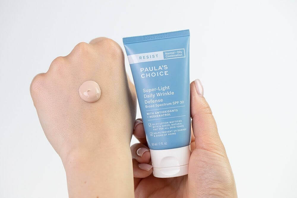 W celu ochrony przed promieniowaniem UV świetnie sprawdzi się lekki krem nawilżający z filtrem dla skóry tłustej i mieszanej Paulas Choice Resist Super Light Daily Wrinkle SPF 30. Jego komfortowa konsystencja nie obciąża skóry, a jednocześnie nawilża ją i zapewnia ochronę antyoksydacyjną.