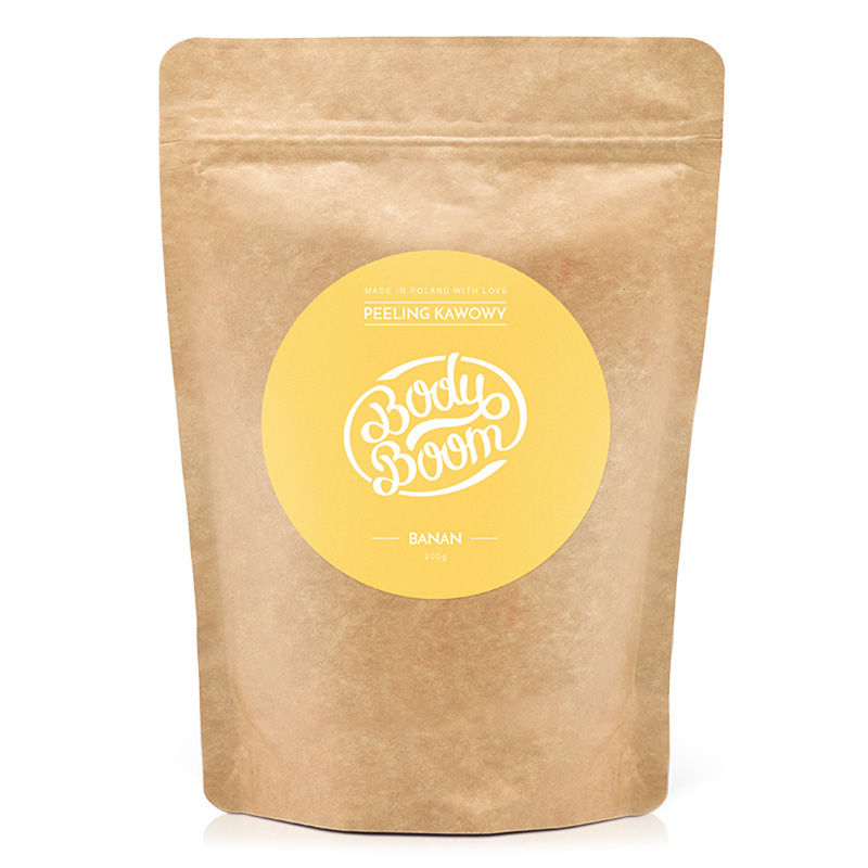 Beztroski Banan - Peeling kawowy. Niezwykle skuteczny i absolutnie oryginalny peeling do ciała, którego podstawą jest najlepsza kawa robusta. Sprawia, że skóra staje się nawilżona i gładka, dzięki czemu wygląda seksownie i kusząco. Twarda skóra, cellulit, rozstępy i inne niedoskonałości redukują się. Efekty widać już po 4 tygodniach stosowania. Sypka konsystencja peelingu zapewnia wysoką wydajność, nawet 5 razy większą w porównaniu do innych peelingów! 200g produktu (opakowanie) pozwala na zastosowanie peelingu aż 20 razy! Minusem peelingów kawowych jest bałagan w łazience po skończonym zabiegu, jednak Body boom dostosowało składniki tak, aby sprzątanie zajmowało jak najmniej czasu. Kofeina zawarta w składzie przyspieszy procesy spalania tkanki tłuszczowej, co pomoże pozbyć się niechcianych centymetrów. Produkt nie był testowany na zwierzętach. Peeling został wyprodukowany w Polsce, lecz skład to połączenie wysokojakościowych składników aktywnych z całego świata. W produkcie znajdziemy: