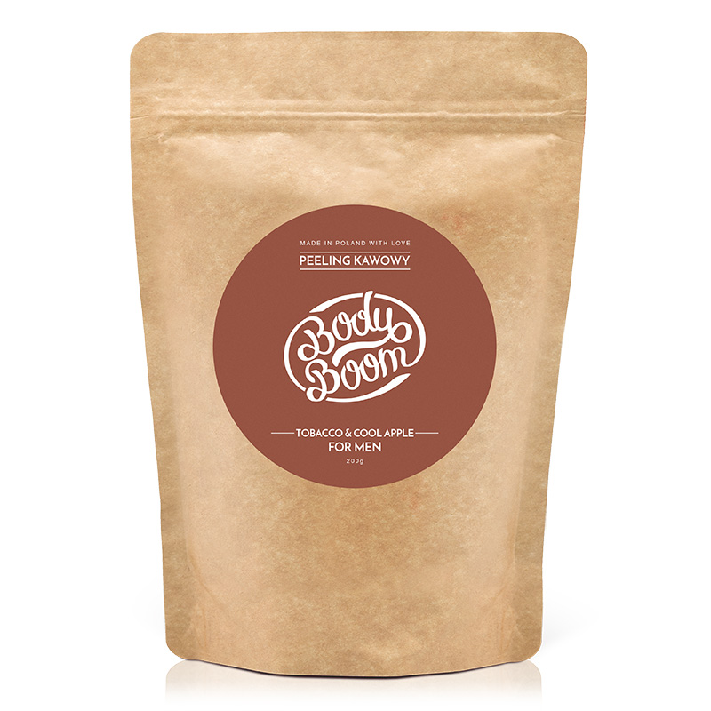 For Cool Men Tobacco & Cool Apple Peeling kawowy Produkt niezwykle skutecznie złuszcza martwe komórki naskórka oraz wygładza skórę całego ciała. Jego zastosowanie jest niezwykle proste i przyjemne, co jest bardzo ważne w przypadku mężczyzn, którzy prowadzą aktywny tryb życia. Peeling oczyszcza skórę oraz sprawia, że jest ona niebywale gładka i miękka w dotyku. Dodatkowo wyrówna koloryt skóry, nawilży oraz odżywi. Dzięki regularnemu złuszczaniu peelingiem pozbędziemy się również problemów wrastających włosków po goleniu, co jest bardzo ważne w przypadku grubej, męskiej skóry. Sam się przekonaj jakie to szybkie. Cały proces razem z prysznicem zajmie nie więcej niż 10 minut. Efekty są naprawdę zdumiewające. Podstawą peelingu jest kawa robusta, która ma działanie odżywcze oraz pobudzające. Zawarte w składzie olejki pozwolą na silne nawilżenie skóry oraz dostarczenie niezbędnych składników odżywczych. Produkt jest również wspaniałym pomysłem na prezent dla każdego mężczyzny. Produkt jest niezwykle wydajny, jedno opakowanie starcza na 20-krotne użycie. Peelingi kawowe pozostawiają zawsze duży bałagan w łazience, gdyż trudno usunąć ziarenka z kabiny prysznicowej oraz wanny. Ogromnym plusem peelingu Body Boom jest specjalna formuła, która ułatwia sprzątanie po skończonym zabiegu. W produkcie znajdziemy: