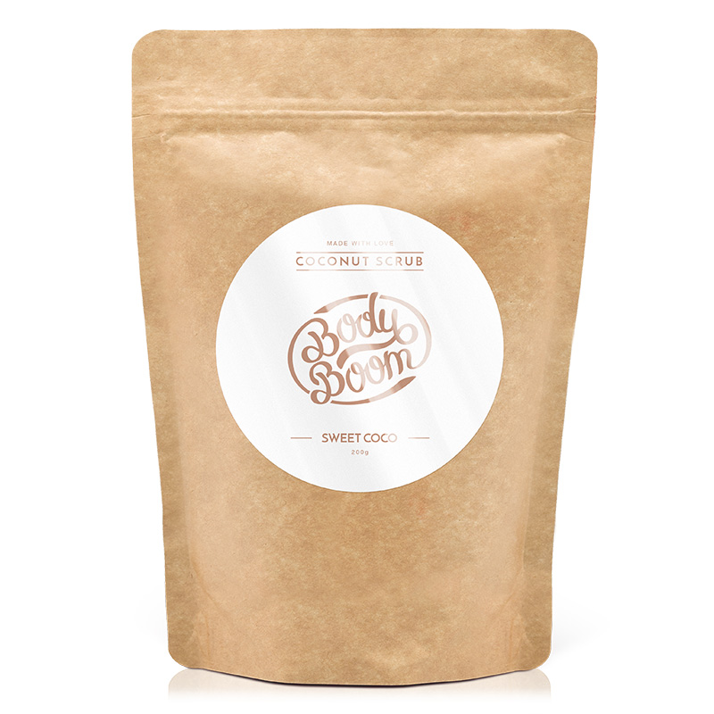 Body Boom Sweet Coco - Peeling kokosowy. Odżywczy peeling Sweet Coco to idealny wybór dla skóry suchej. Połączenie miąższu kokosowego oraz wysokiej jakości kawy tworzy cudowny zapach, dzięki czemu peeling także koi zmysły i pozwala się odprężyć po długim dniu. Odżywcza formuła bazująca na oleju kokosowych oraz oleju ze słodkich migdałów dba o odpowiedni poziom nawilżenia skóry i zapobiega podrażnieniom. Skóra po aplikacji peelingu jest nie tylko gładka, ale również miękka i nawilżona. Delikatne drobinki kawy pozwalają dokładnie usunąć martwy naskórek, dzięki czemu skóra jest jedwabiście gładka. Peeling kokosowy Body Boom ze względu na swoją formułę może być stosowany zarówno na ciało jak i twarz.