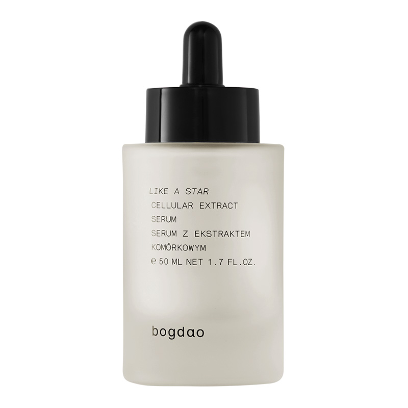 Like a Star to jeden z moich pielęgnacyjnych ulubieńców Bogdao. Filozofia polskiej marki wyróżnia produkty spośród kosmetyków wegańskich. Minimalistyczne opakowania zdobią kącik pielęgnacyjny i dodają elegancji. Formuła serum jest gęsta, emulsyjna, mimo to komfortowo dozuje się pipetą oraz dobrze wchłania się po nałożeniu. Aplikację umila delikatny zapach receptury, który kojarzy się ze świeżością i zbliża do natury. Kosmetyk polecam szczególnie dla skór suchych oraz wrażliwych, wymagających dawki nawilżenia i otulenia przed aplikacją kremu. Nawilżające serum z ekstraktem komórkowym tuż po użyciu redukuje uczucie napięcia oraz nadaje komfort. Z tego względu rekomenduję jego stosowanie także skórom dojrzałym, z widocznymi liniami oraz zmarszczkami. Skład wzbogacony o roślinne ekstrakty rozświetla skórę i nadaje efektu "glass skin" sprawiając, że staje się ona promienna i pełna blasku.