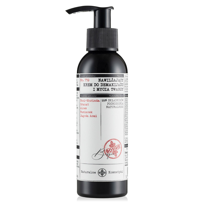 Nawilżający krem do demakijażu i mycia twarzy wykazuje łagodne działanie oczyszczające, nie powodując przesuszenia, podrażnienia czy zaburzenia fizjologicznej równowagi skóry. Formuła wzbogacona została o odżywcze i antyoksydacyjne wyciągi roślinne z morwy indyjskiej, granatu i jagód Acai. Ponadto w składzie znajdziemy aloes oraz rumianek, składniki o działaniu łagodzącym podrażnienia i przeciwzapalnym.