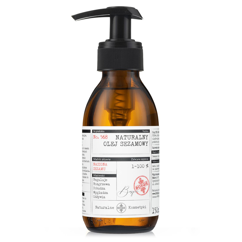 Efektem stosowania Bosqie Sesame Oil No.568 jest wygładzenie i odżywienie skóry oraz włosów.