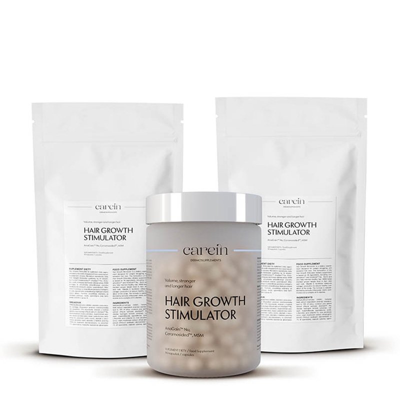 Hair Growth Stimulator to odpowiedni wybór dla osób chcących wzbogacić dietę w składniki wspierające kondycję włosów. Suplementacja zalecana jest przez minimum 4 miesiące, zgodnie z naturalnym cyklem ich wzrostu.