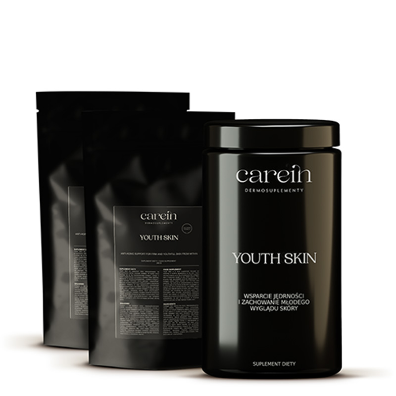 Produkt Youth Skin stanowi uzupełnienie codziennej diety, dostarczając cennych składników odżywczych. Może być stosowany jako element kompleksowej dbałości o skórę. W trosce o środowisko suplement dostępny jest w formie refill, umożliwiającej uzupełnienie zużytego opakowania.