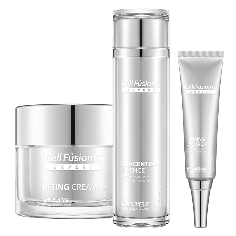 Składowa Cell Fusion C Expert Time Reverse Lifting Cream Krem przeciwstarzeniowy występuje w zestawie Timereverse MINI KIT w zmienionej objętości.