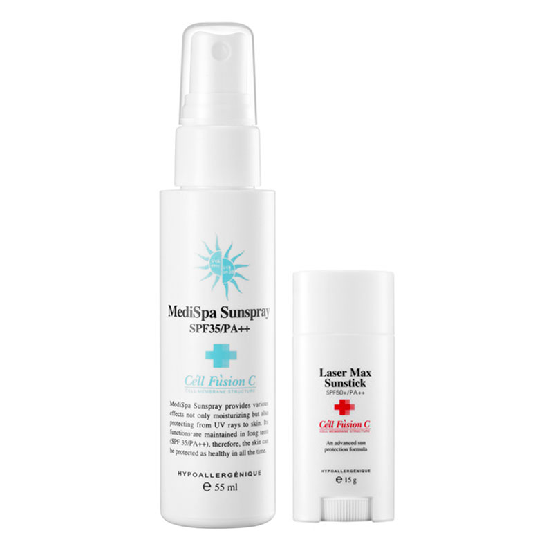 PROMOCJA ZESTAW MediSpa Sunspray SPF35/PA +++ filtr ochronny oraz Laser Max Sunstick SPF 50+/PA++ sztyft ochronny W CENIE 120 zł (regularna cena 175 zł)