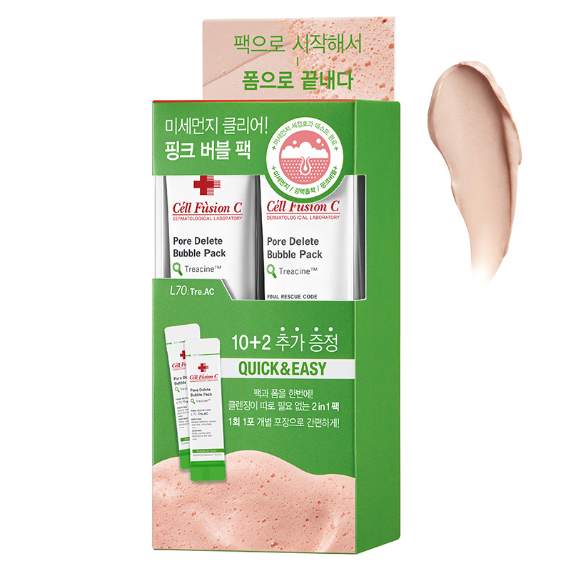 Pore Delete Bubble Pack - Różowa pianka głęboko oczyszczająca. Produkt w postaci różowej, bąbelkowej pianki przeznaczonej do oczyszczania skóry tłustej, problematycznej. Zawiera unikalny kompleks Treacine, bogaty w 5 silnie aktywnych składników mających na celu usprawnienie keratynizacji skóry. Wykazuje działanie przeciwbakteryjne, przywraca odpowiednie pH oraz usuwa zanieczyszczenia. Ponadto, doskonale naprawia uszkodzenia powstałe w wyniku nadmiernej ekspozycji na promieniowanie UV. Dogłębnie oczyszcza skórę i niweluje problem łojotoku i trądziku. Dodatek różowej glinki przyspiesza metabolizm komórkowy, co skutkuje lepszym dotlenieniem skóry, a ekstrakt z mandarynki działa antyoksydacyjnie i niweluje wolne rodniki tlenowe. Pianka pozostawia skórę dogłębnie oczyszczoną, odświeżoną oraz rozświetloną. Pianka pakowana jest w higieniczne, jednorazowe saszetki.