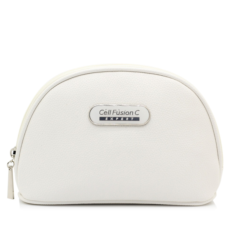 Jednokomorowa kosmetyczka dostępna w kolorze białym (również wnętrze). Wykonana została z materiału skóropodobnego. Ma zaokrąglony kształt, jest funkcjonalna, sztywna, od góry zamykana na suwak.
