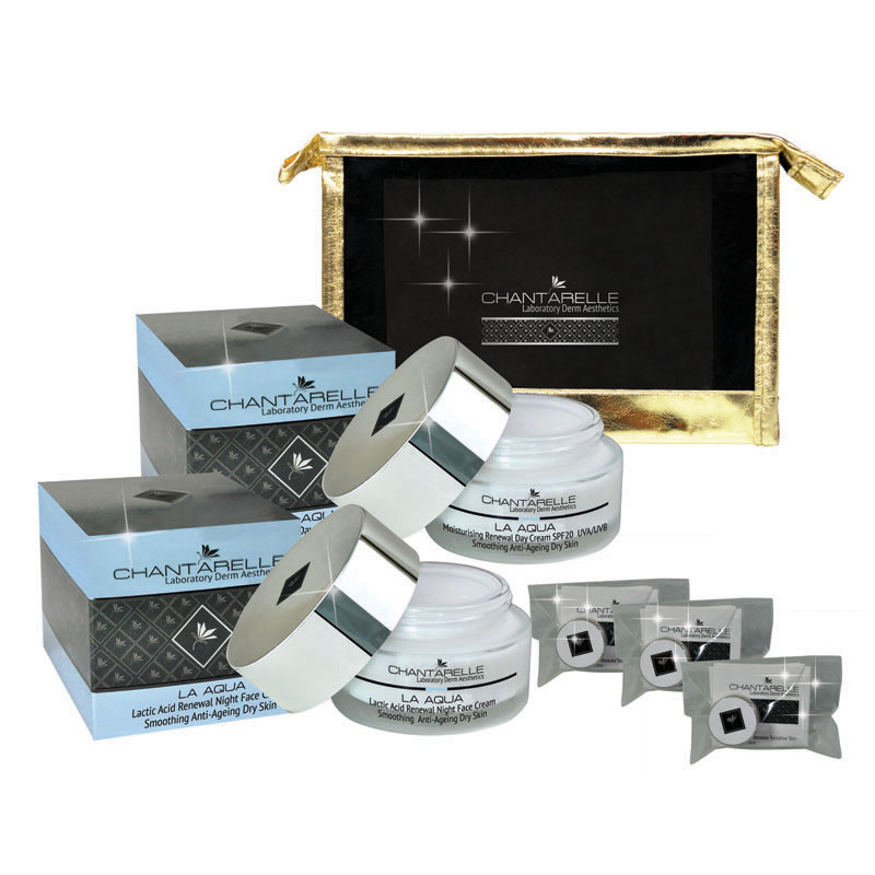 Nawilżenie i odmłodzenie dla wymagającej skóry suchej, nieelastycznej, ze zmarszczkami na skutek odwodnienia. Preparaty z technologią odnowy włókien elastycznych, syntezy akwaporyn i filagryny, z kwasem mlekowym i betaglukanem.