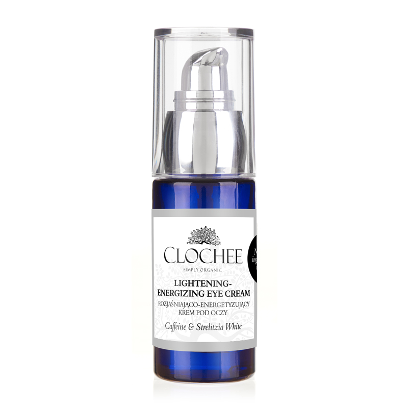 Lightening-Energizing Eye Cream - Rozjaśniająco-energetyzujący krem pod oczy. Krem przeznaczony dla delikatnej skóry w okół oczu. Idealny dla skóry wrażliwej. Produkt redukuje cienie pod oczami, obrzęki oraz zapobiega ich ponownemu powstawaniu. Skóra staje się pełna blasku i wygładzona. Zawarta kofeina ma działanie drenujące, co poprawia mikrokrążenie oraz zwęża naczynia krwionośne, dzięki czemu dochodzi do redukcji obrzęków i cieni pod oczami. Antyoksydacyjne działanie pozwala na ochronę skóry przed szkodliwym promieniowaniem słonecznym. Strelicja biała skutecznie nawilża i ujędrnia skórę oraz opóźnia powstawanie zmarszczek.