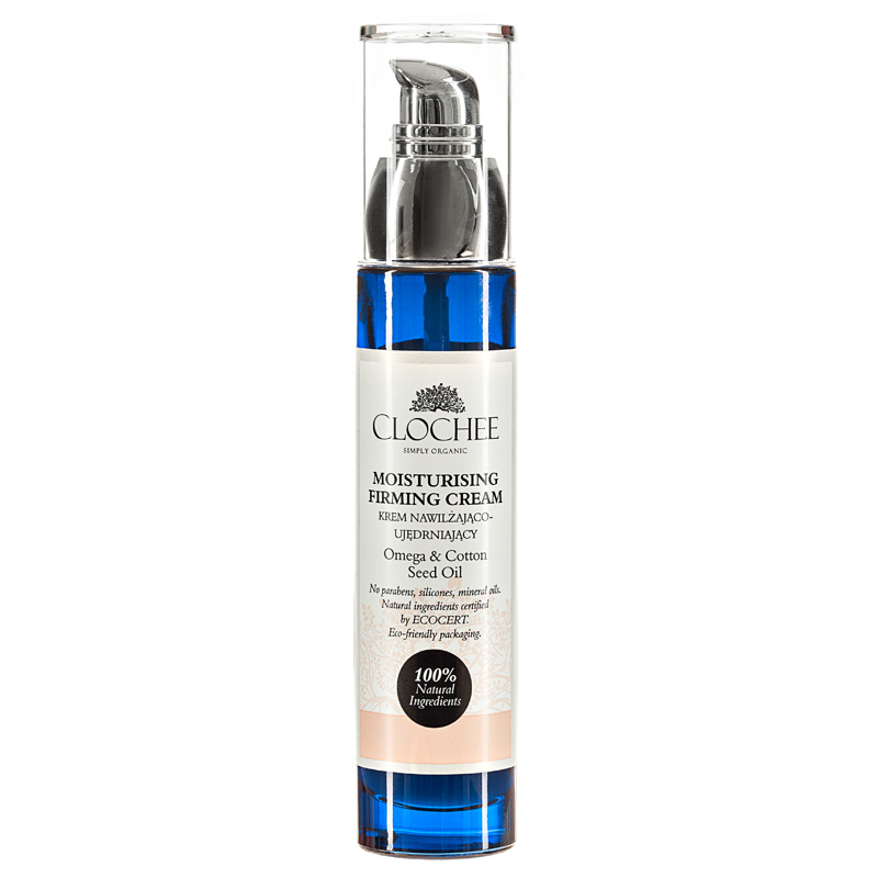 Moisturising Firming Cream - Krem nawilżająco-ujędrniający. Wspaniały krem do codziennej pielęgnacji każdego rodzaju skóry a w szczególności suchej, wrażliwej i starzejącej się. Doskonale wygładza i jednocześnie silnie ujędrnia skórę zarówno twarzy jak i szyi. Dzięki swojej lekkiej konsystencji sprawdza się również jako baza pod makijaż. Kompleks Omega 3,6,9 pochodzący z nasion lnu to źródło witaminy F zapewniającej skórze odpowiednie nawilżenie odbudowanie płaszcza hydrolipidowego. Działanie regenerujące zapewnia Olej z nasion bawełny jako źródło nienasyconych kwasów tłuszczowych (kwas oleinowy i linolowy) oraz witaminy E redukując wolne rodniki i hamując proces starzenia się skóry.