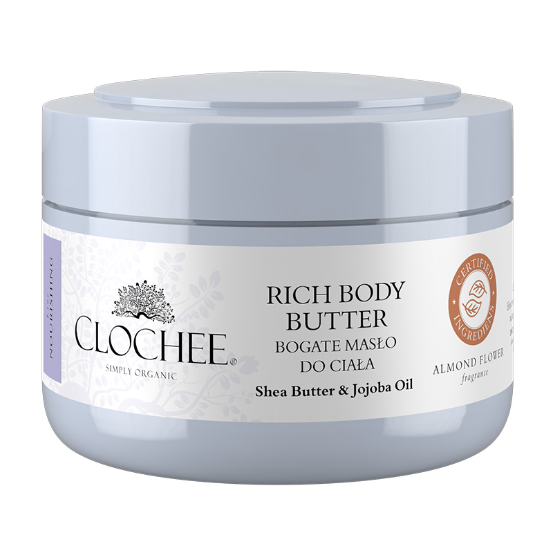 Rich Body Butter - Bogate masło do ciała - migdałowo-kwiatowe. Wyjątkowo lekkie i puszyste w konsystencji a zarazem bogate w skład masło do ciała o pięknym zapachu migdałów i kwiatów. Wskazane dla nawet najbardziej wrażliwej, atopowej i przesuszonej skóry przynosząc jej natychmiastową ulgę oraz komfort. Intensywnie odżywia i uelastycznia dzięki zawartości Masła Shea bogatego w witaminy A,E i F oraz Oleju Jojoba. Dodatkowo działa antybakteryjnie łagodząc wszelkie podrażnienia. W efekcie Twoja skóra staje się gładsza i z każdym dniem coraz piękniejsza.