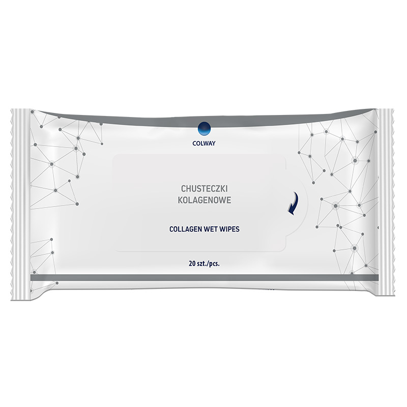 Collagen Wet Wipes - Chusteczki kolagenowe. Wyjątkowe chusteczki pozwalają oczyścić nawet bardzo wrażliwą skórę w każdych warunkach. Kompozycja delikatnych dla skóry substancji myjących pozwala usunąć brud z powierzchni skóry oraz pozostawia skórę gładką i nawilżoną. Składniki takie jak kolagen i d-panthenol odżywiają i regenerują skórę. Ekstrakt z szałwii działa antybakteryjnie, przeciwzapalnie i hamuje wydzielanie potu. Deltaglukonolatkon to składnik działający delikatnie złuszczająco- poprawia strukturę skóry oraz stymuluje produkcje kolagenu. Co więcej, skóra po zastosowaniu chusteczek lepiej absorbuje składniki aktywne! Podręczne opakowanie pozwala na stosowanie chusteczek w każdych warunkach oraz zapobiega ich wysychaniu. Dzięki wyjątkowym składnikom chusteczki mogą być stosowane nawetu dzieci powyżej 3 roku życia!
