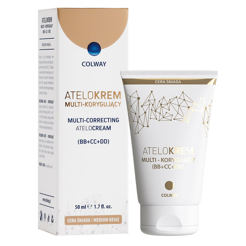 Multi-Correcting Atelocream (BB+CC+DD) - Atelokrem multi-korygujący dedykowany do każdego typu cery, zarówno dla nastolatek, które zaczynają swą przygodę z delikatnym makijażem, w celu ukrycia niedoskonałości, jak i kobiet z pierwszymi oznakami starzenia się skóry. Jest to kompleksowy kosmetyk o działaniu korygująco-odbudowującym, który stanowi połączenie kremów typu BB, CC i DD. Kwas glicyryzynowy wykazuje działanie kojące, łagodzące, ale także przeciwzapalne i przeciwbakteryjne, dodatkowo rozjaśnia przebarwienia skóry. Kwas hialuronowy zapewnia odpowiedni stopień nawilżenia skóry. Atelokolagen zwiększając produkcję kolagenu w skórze, świetnie wygładza zmarszczki nawet w dojrzałym wieku. Saponiny żeń-szenia i polifenole jagód acai stanowią źródło antyoksydantów, neutralizując szkodliwe działanie wolnych rodników opóźniają proces starzenia się skóry. D-pantenol i allantoina koją skórę przyspieszając jej regenerację . Dodatkowo pigmenty nadające skórze piękny koloryt zawieszone są w oleosomowej bazie ciekłokrystalicznej, która zapewnia rewelacyjną biodostępność składników aktywnych. Dzięki temu kosmetyk można porównać z kultowymi, azjatyckimi kremami "blemish balm", pielęgnacja i jednoczesna natychmiastowa poprawa wyglądu skóry.