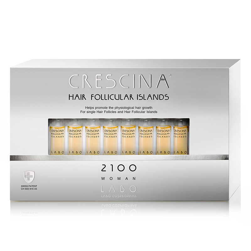 Hair Follicular Island 2100 Woman - Kuracja stymulująca odrastanie włosów 2100 dla kobiet. Produkt kosmetyczny do stosowania miejscowego. Dostępny jest w formułach przeznaczonych do włosów rzednących z przyczyn fizjologicznych (nie patologicznych). Formuły opracowane specjalnie dla kobiet. Kuracja skuteczna w zaawansowanej fazie przerzedzenia włosów.