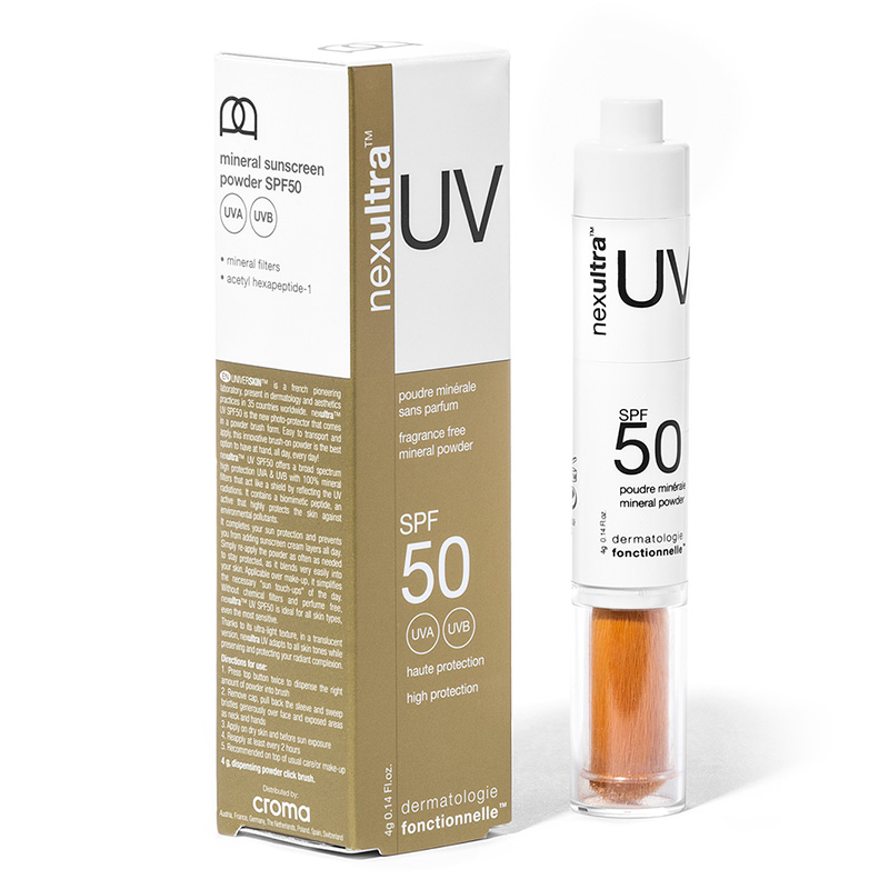 Preparat w formie pędzla z pudrem przeznaczony dla każdego typu skóry również tej najbardziej wrażliwej. Zawiera filtry mineralne takie jak tlenek cynku i tlenek tytanu, które stanowią ochronę przed promieniowaniem UVA i UVB. Obecność hydroksyapatytu wapnia stymuluje aktywność fibroblastów i pomaga w gojeniu uszkodzeń skóry. Produkt przystosowuje się do kolorytu cery, zapewnia ochronę przed słońcem i jest wygodny w użyciu.