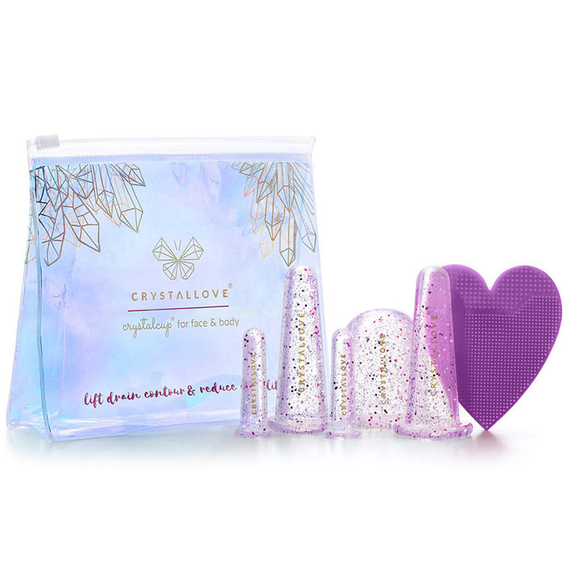 Bańki do masażu antycellulitowego oraz ujędrniającego. W zestawie została umieszczona szczoteczka silikonowa do wielokrotnego użytku przygotowująca skórę do masażu i oczyszczająca ze wszelkich zanieczyszczeń. Design baniek zaprojektowany został z myślą o kryształach co umila wykonywanie zabiegu. Masaż bańkami wykonywany systematycznie pobudza krążenie krwi, wspomaga wchłanianie substancji aktywnych z kolejno aplikowanych produktów pielęgnacyjnych oraz znacznie usprawnia usuwanie toksyn.