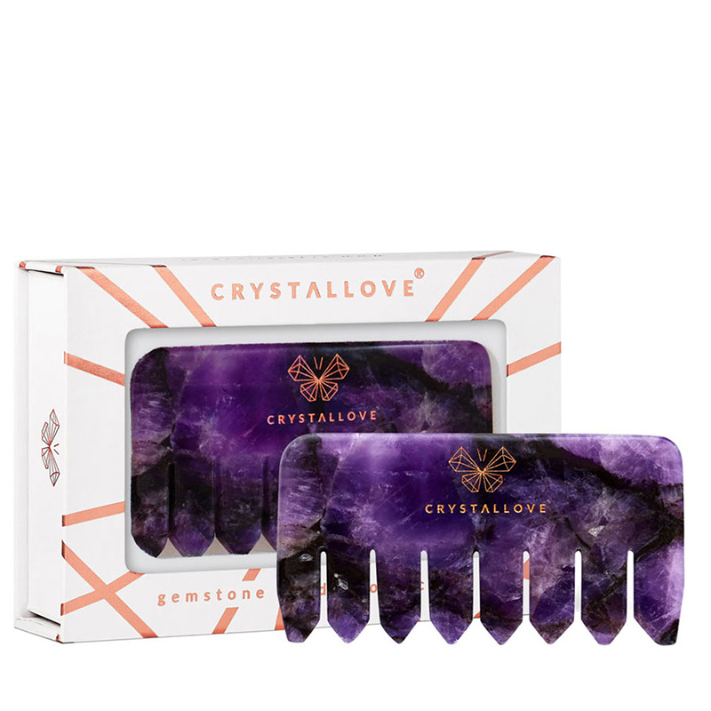 Grzebień stymuluje skórę głowy i cebulki dzięki czemu włosy szybciej rosną. Przy regularnym stosowaniu wpływa na lepsze ukrwienie skóry głowy oraz zmniejszenie napięcia i szybszy porost włosów. Ametyst z którego wykonany jest grzebień wykazuje także działanie redukujące stres a także wspomaga detoksykację organizmu. Produkt zapakowany w woreczek.