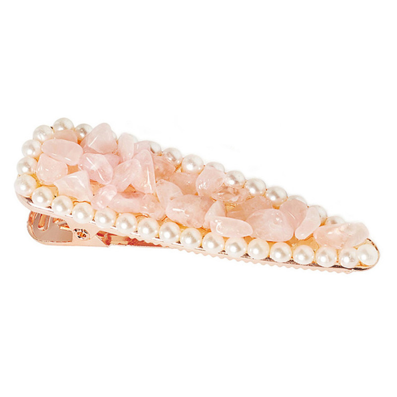 Elegancki dodatek, dopełniający wygląd całej fryzury. Sprawdzi się zarówno na codzień jak i na specjalne okazje, jako przyciągające wzrok akcesorium. Spinka stanowi subtelny, lecz efektowny akcent, który idealnie komponuje się we włosach. Crystallove - Spinka do Włosów z Kryształami została wykonana z naturalnego kamienia ozdobionego subtelnymi perełkami.
