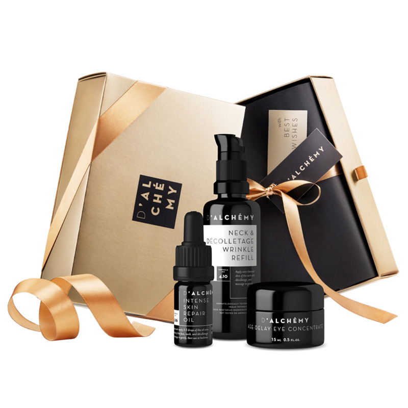Składowa Dalchemy Intense Skin Repair Oil Intensywnie regenerujący olejek do twarzy występuje w zestawie Luxury Skincare Set w zmienionej objętości.