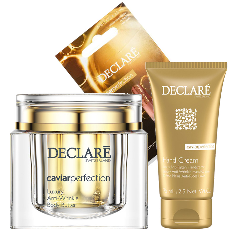 Składowa Declare Caviar Perfection Luxury Anti-Wrinkle Ampoule Caviarperfection Luksusowe ampułki kawiorowe występuje w zestawie Kawiorowy do Ciała w zmienionej objętości.