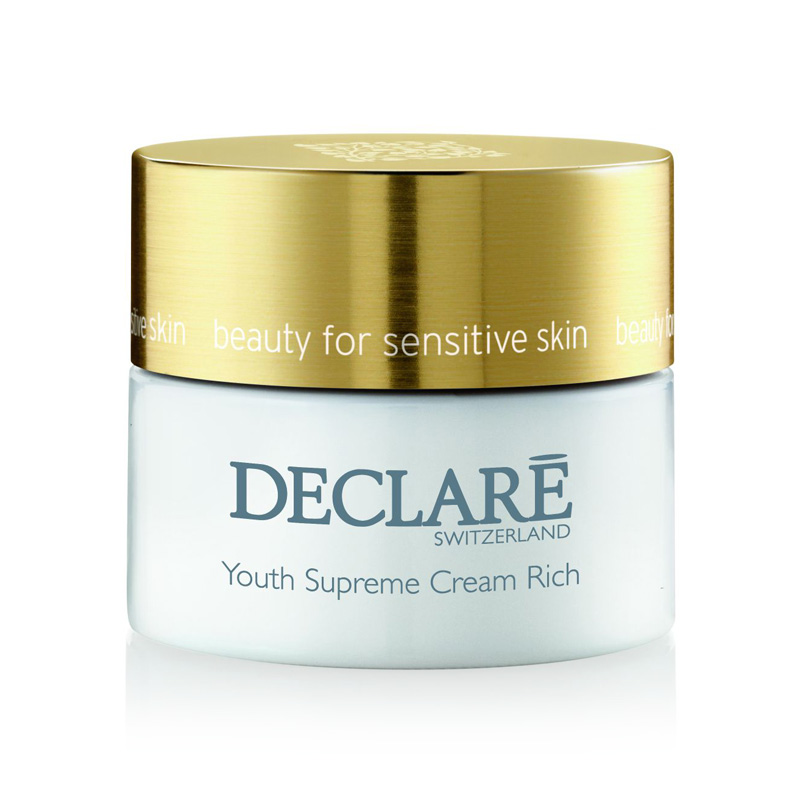 Za działanie nawilżające odpowiada kwas hialuronowy. Obecność cząsteczek jedwabiu czyni skórę niezwykle miękką i gładką, a ekstrakt z magnolii zapewnia elastyczność i sprężystość. Po użyciu Declare Youth Supreme Cream Rich uzyskujemy efekt promiennej, odżywionej i zregenerowanej skóry.