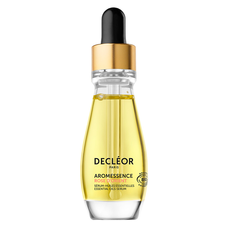 Aromaessence Rose D'Orient - Aromaesencja róża. Serum w olejku przeznaczone do pielęgnacji skóry wrażliwej i reaktywnej. Dzięki zawartości olejów z pestek moreli, słonecznika i słodkich migdałów błyskawicznie regeneruje skórę, odżywia ją oraz wzmacnia jej mechanizmy obronne. Olejki eteryczne m.in z róży damasceńskiej, pelargonii i bergamotki poprawiają koloryt skóry, tonizują ją i działają silnie antyoksydacyjnie. W rezultacie skóra staje się doskonale odżywiona, nawilżona i ukojona. Aromaesencja posiada jedwabistą konsystencję, dzięki czemu łatwo się wchłania, nie pozostawiając na skórze tłustego filmu.