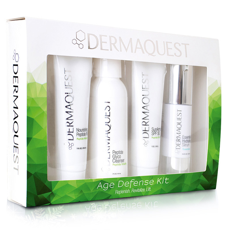Składowa Dermaquest Nourishing Peptide Rich Ujędrniająco-odżywczy krem peptydowy do twarzy i szyi występuje w zestawie Age Defense Kit w zmienionej objętości.