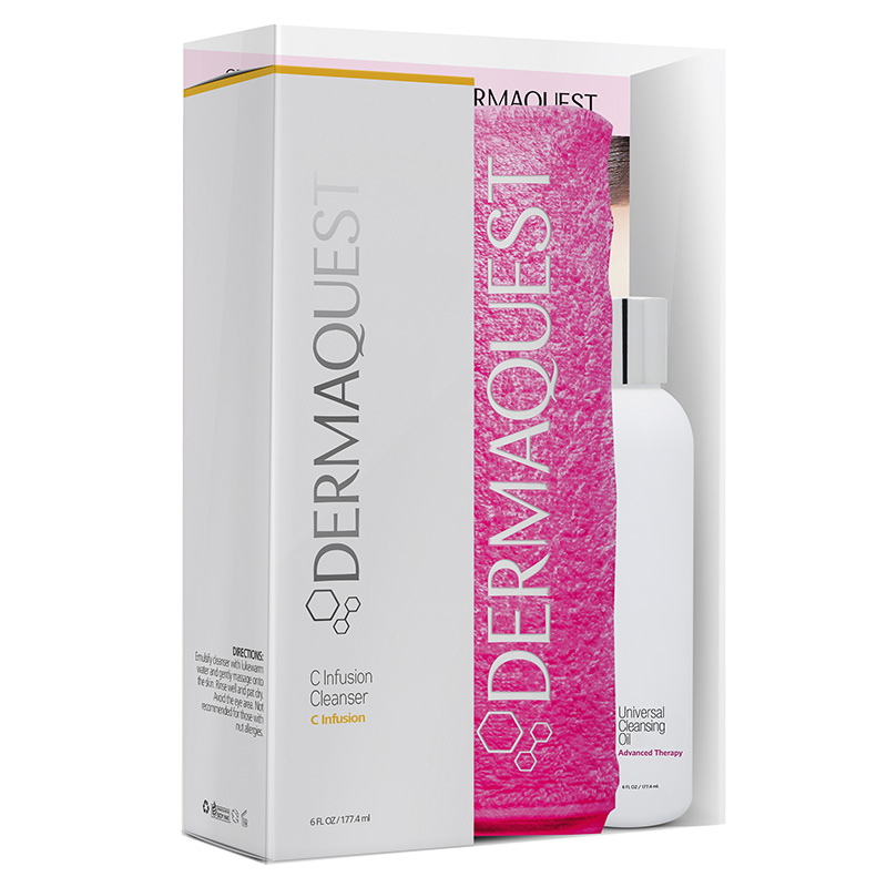 Składowa Dermaquest Universal Cleansing Oil Olejek myjący do twarzy i oczu występuje w zestawie DQ C Infusion Set w zmienionej objętości.