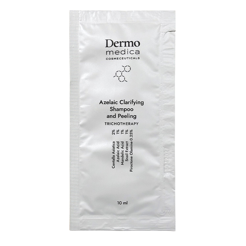 Składowa Dermomedica Azelaic Clarifying Shampoo and Peeling Azelaic Clarifying Shampoo and Peeling 10 ml występuje w zestawie DermoBeauty Advent Calendar w zmienionej objętości.