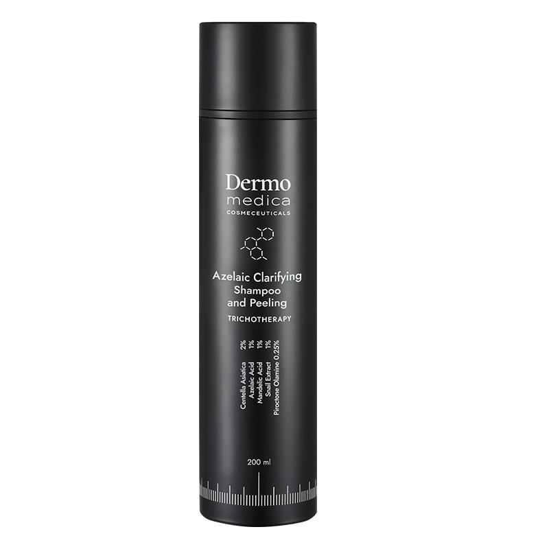 Kosmetyk 2w1, działający jako szampon oraz peeling, przeznaczony do pielęgnacji skóry głowy. Azelaic Clarifying Shampoo and Peeling marki Dermomedica delikatnie, ale dokładnie oczyszcza skalp, zapobiega wypadaniu włosów oraz pojawianiu się łupieżu.