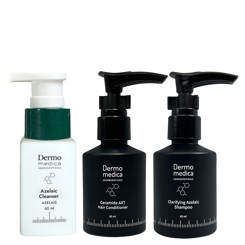Szampon Dermomedica z kwasem azelainowym delikatnie oczyszcza skórę głowy, nie podrażniając jej ani nie wysuszając włosów. Krem Dermomedica z kwasem azelainowym skutecznie zwęża pory, redukuje niedoskonałości, a jednocześnie nie wysusza ani nie podrażnia skóry. Odżywka Dermomedica z ceramidami doskonale nawilża i wygładza włosy.