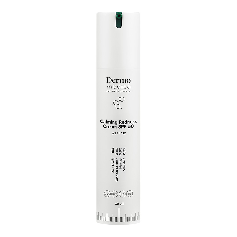 Formuła produktu oparta została na tlenku cynku, dzięki czemu zapewnia wysoką, szerokopasmową ochronę przed promieniowaniem UVA, UVB, HEV oraz IR, a jednocześnie łagodzi podrażnienia. Trójpeptyd miedziowy (GHK-Cu) wykazuje działanie przeciwzapalne, wspiera regenerację i wzmacnia naczynia krwionośne, a dodatek Matrixylu poprawia jędrność i strukturę skóry.