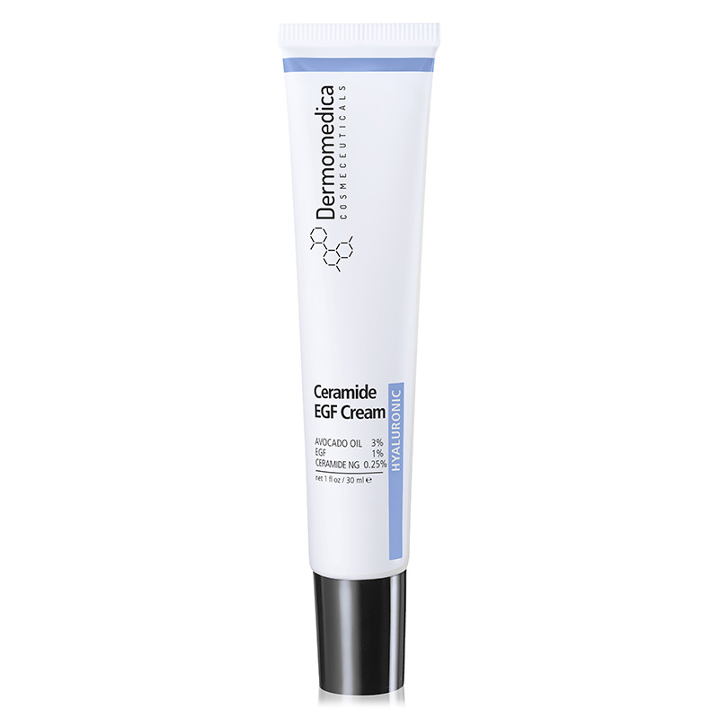 Ceramide EGF Cream - Odżywczy krem naprawczy z ceramidami i faktorem wzrostu. Krem posiada formułę zawierającą połączenie ceramidów oraz epidermalnych czynników wzrostu. Dzięki temu wykazuje właściwości silnie przeciwstarzeniowe oraz odżywiające skórę. Ceramide NG działa wzmacniająco i odbudowująco na cement międzykomórkowy, co prowadzi do podwyższenia poziomu nawilżenia oraz zatrzymania wody w naskórku. Jest doskonałym produktem do cery odwodnionej i przesuszonej, gdyż zmniejsza transepidermalną ucieczkę wody. Już po pierwszym użyciu przywraca komfort przesuszonej skórze. Epidermalny czynnik wzrostu działa stymulująco na komórki macierzyste, co prowadzi do zwiększenia regeneracji, nawet w głębokich partiach skóry. W składzie znajdziemy również olej z awokado, który dostarcza skórze niezbędnych witamin, a skwalan spowalnia proces starzeniowy i działa odżywczo na skórę. Krem doskonale sprawdzi się w przypadku skóry bardzo suchej, podrażnionej oraz wrażliwej. Skóra po użyciu staje się idealnie nawilżona, złagodzona i ukojona.