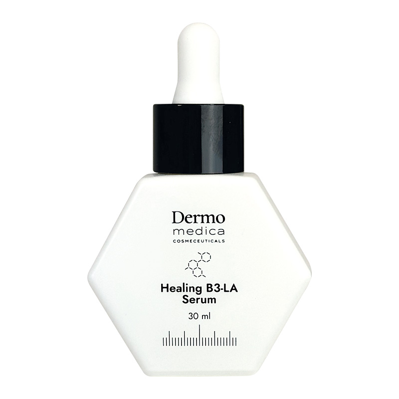 Kosmetyk Healing B3-LA Serum to cenne składniki aktywne zamknięte w szklanej, estetycznie wykonanej buteleczce z pipetą. To propozycja, po którą chętnie sięgam, gdy moja skóra wymaga nawilżenia, ukojenia i przywrócenia komfortu. Wodnisto-żelowa konsystencja szybko się wchłania, jednocześnie nie obciążając nadmiernie skóry, także trądzikowej. Subtelnie wyczuwalny zapach wynika ze składu kosmetyku. Serum na dzień i na noc marki Dermomedica, dzięki zawartym składnikom aktywnym, wspomaga regenerację, działa przeciwzapalnie, a także seboregulująco. Szczególnie rekomenduję ten produkt osobom, których skóra potrzebuje ukojenia, również po inwazyjnych zabiegach profesjonalnych lub wymagających kuracjach dermatologicznych. Pamiętajmy jednak, że najlepsze rezultaty osiągniemy w połączeniu z kremem ukierunkowanym na wybrane działanie pielęgnacyjne.