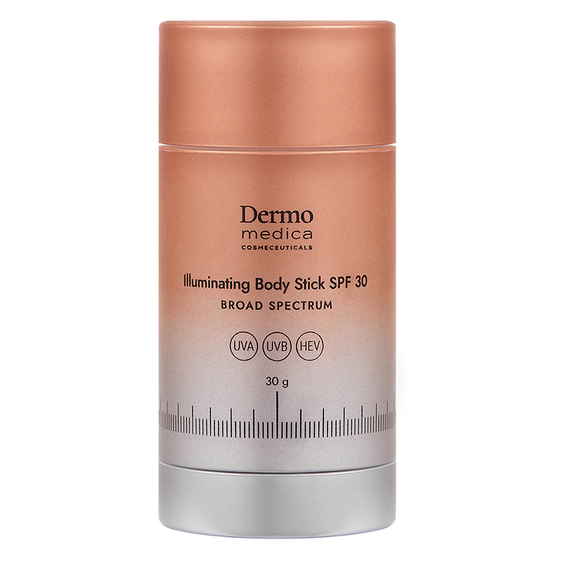 Wygodna forma sztyftu zapewnia szybką i komfortową aplikację. W efekcie stosowania Dermomedica Illuminating Body Stick SPF 30 skóra jest chroniona przed promieniowaniem słonecznym, doskonale nawilżona i pełna złocistego blasku.