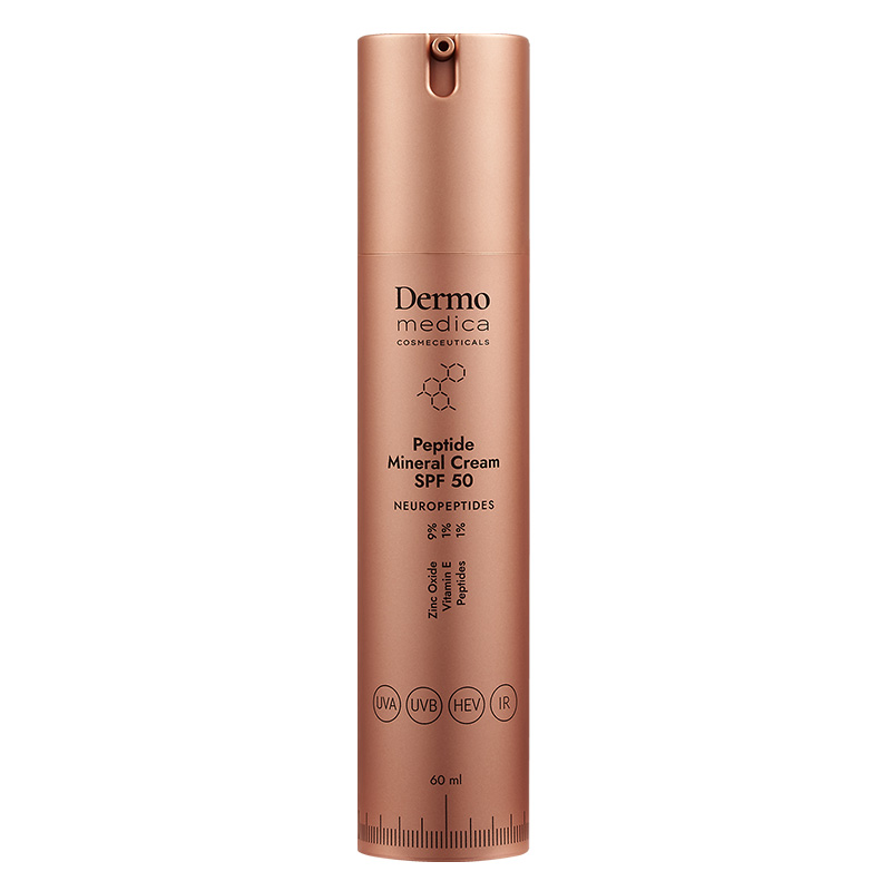 Peptide Mineral Cream SPF 50 chroni nie tylko przed promieniowaniem UVA i UVB, ale także przed promieniowaniem Infrared i HEV, które emitowane jest przez ekrany monitorów, telefonów i telewizorów.