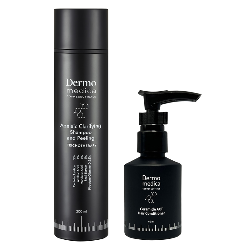Azelaic Clarifying Shampoo and Peeling Trychologiczny szampon i peeling oczyszczającyKosmetyk 2w1, działający jako szampon oraz peeling, przeznaczony do pielęgnacji skóry głowy. Azelaic Clarifying Shampoo and Peeling marki Dermomedica delikatnie, ale dokładnie oczyszcza skalp, zapobiega wypadaniu włosów oraz pojawianiu się łupieżu.