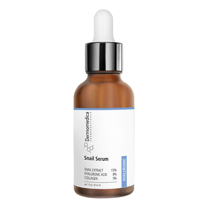 Snail Serum - Serum z ekstraktem ze ślimaka. Produkt polecany szczególnie dla skóry wrażliwej, podrażnionej, uszkodzonej, lecz sprawdzi się w przypadku każdego typu cery. W składzie zawiera ekstrakt ze śluzu ślimaka, kolagen oraz kwas hialuronowy. Ma działanie przeciwstarzeniowe oraz regenerujące skórę. Ekstrakt ze śluzu ślimaka działa wygładzająco oraz stymulująco, przyspiesza procesy naprawcze oraz oddziałuje nawet na głębsze partie skóry. Cera dzięki temu staje się napięta, jędrna i młodo wyglądająca. Serum wykazuje również działanie przeciwzapalne, antybakteryjne, co jest ważne w przypadku skóry dotkniętej trądzikiem pospolitym oraz różowatym. W składzie znajdziemy również kwas hialuronowy oraz kolagen, który zwiększa poziom nawilżenia oraz elastyczność skórną. Serum doskonale sprawdzi się w przypadku skóry po zabiegach inwazyjnych (medycyny estetycznej, kosmetologii itp.). Cera po użyciu jest doskonale nawilżona, wygładzona i złagodzona, staje się bardziej jędrna i elastyczna.