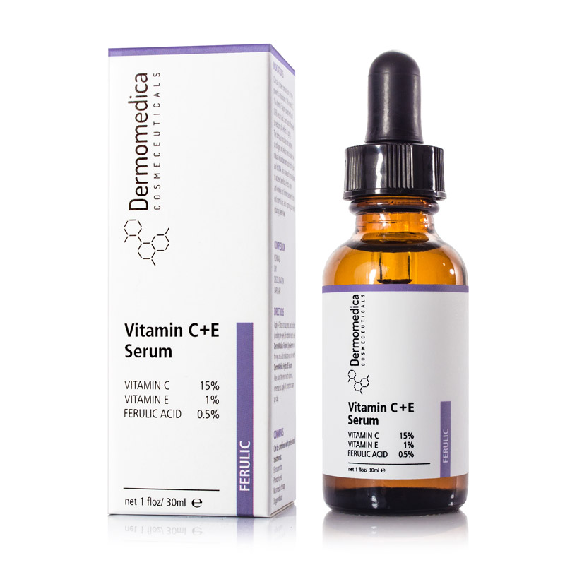 Vitamin C+E Serum Serum antyoksydacyjne przeciwstarzeniowe. Przebadane klinicznie połączenie 3 silnych antyoksydantów skutecznie przyczynia się do zniwelowania efektów starzenia się skóry. Formuła stymuluje syntezę kolagenu i elastyny oraz dwukrotnie zwiększa naturalną antyoksydacyjną ochronę skóry i jej DNA. Badania wykazały ośmiokrotnie większe działanie fotoprotekcyjne przeciw promieniowaniu UVA i UVB w porównaniu do stosowania formuł opartych tylko na witaminie C i E. Zaawansowana receptura pozwala osiągnąć bardzo korzystne rezultaty w terapii przeciwzmarszczkowej i pojędrniającej skórę suchą oraz normalną, dodatkowo poprawiając koloryt i zmniejszając przebarwienia. Serum polecana również do łagodzenia rumienia i wspomagania leczenia skóry po terapii laserem CO2 oraz po intensywnej ekspozycji na słońce. Codzienne stosowanie 15% kwasu L-askorbinowego zwiększa jego stężenie w skórze dwudziestokrotnie, a po około 3 dniach dochodzi do wysycenia tkanek i inhibicji procesów oksydacji. Po wchłonięciu serum nie zmywa się ani nie ściera działając do 72 godzin.