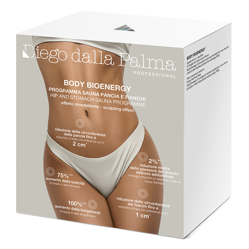Rozgrzewający bandaż modelujący o skoncentrowanym działaniu przeznaczony do stosowania na najbardziej oporne partie ciała: brzuch, biodra i pośladki.