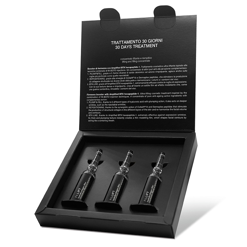 30 dniowa kuracja dla skóry dojrzałej, z widocznymi zmarszczkami, bruzdami i brakiem elastyczności. Inspirowana technikami iniekcji wypełniaczy oraz toksyny botulinowej zapewniająca efekt liftingu. Zawiera kwas hialuronowy 5D o właściwościach wypełniających, który redukuje widoczność nawet głębokich zmarszczek.
