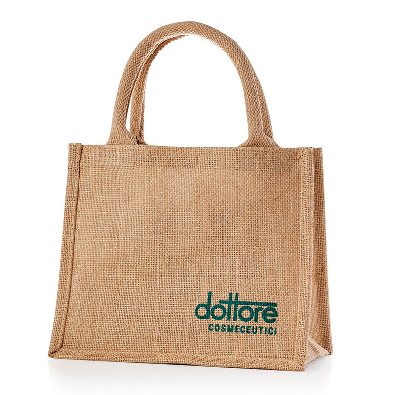 Dottore Bag - Torba jutowa. Ekologiczna, płócienna torba o szerokim zastosowaniu. Sprawdzi się zarówno do przechowywania kosmetyków, jak i na co dzień, zamiast plastikowych toreb. Posiada wygodne rączki i zielone logo marki w dolnym rogu.