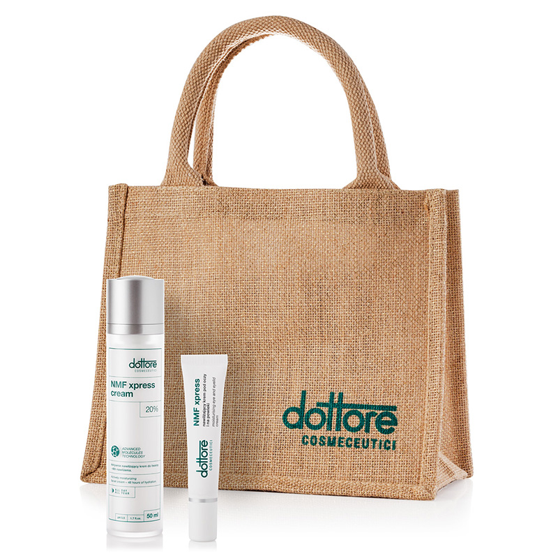 Dottore Bag - Torba jutowa. Ekologiczna, płócienna torba o szerokim zastosowaniu. Sprawdzi się zarówno do przechowywania kosmetyków, jak i na co dzień, zamiast plastikowych toreb. Posiada wygodne rączki i zielone logo marki w dolnym rogu.