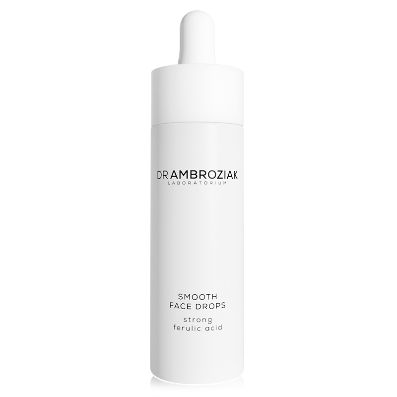 Serum Smooth Face Drops marki Dr Ambroziak to doskonała propozycja do pielęgnacji skóry z oznakami fotostarzenia, nierównomiernym kolorytem oraz skór poszarzałych. Jego niezwykle lekka, płynna formuła bardzo szybko się wchłania i nie obciąża cery. W składzie produktu zastosowana została między innymi witamina C oraz kwas ferulowy, które zapewniają działanie antyoksydacyjne, rewitalizujące i wygładzające. Kwas hialuronowy natomiast odpowiada za efekt nawilżenia. Zapach kosmetyku jest charakterystyczny dla produktów zawierających kwas ferulowy, co warto uwzględnić w przypadku osób wrażliwych na ten aspekt. Jako kosmetolog doceniam serum Smooth Face Drops za efekt rozjaśnionej, promiennej cery, jaki zapewnia oraz za jego antyoksydacyjne właściwości.