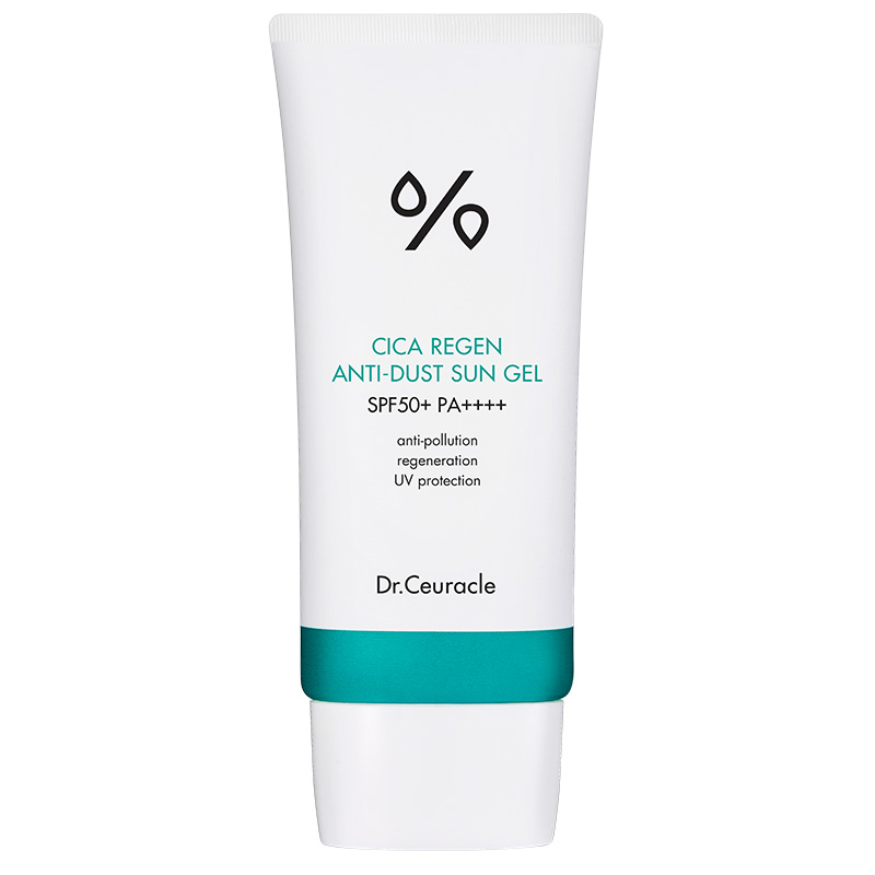 Cica Regen Anti Dust Sun Gel SPF50+PA++++ - Krem-żel z filtrem. Lekki preparat z wysoką ochroną przeciwsłoneczną. Zawiera Wyciąg Actinidia argute (Kiwi) wraz z kompleksem Centella dzięki czemu preparat jest skarbnicą substancji przeciwutleniających i pełni funkcję ochronną przed szkodliwymi dla skóry czynnikami zewnętrznymi. Łagodzi wrażliwą skórę i naprawia uszkodzenia oraz przynosi skórze blask, zdrowy wygląd i ochronę na co dzień.